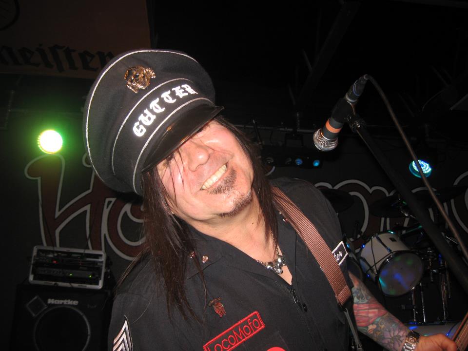 Gutter: Well, back when I was in a band in Hollyweird my only transportation was my motorcycle so my singer & guitarist would pick me and my bass up for band rehearsals and they would always be late. So there I’d be sitting on the curb waiting for them with my bass and they would say, “There’s the Gutter Dweller” and that became my nickname…Gutter Dweller, which was quickly shortened to “Gutter”…hah! and people still call me that to this day.